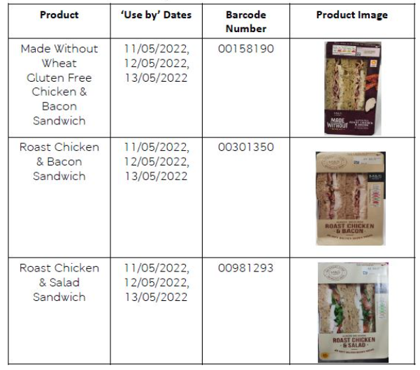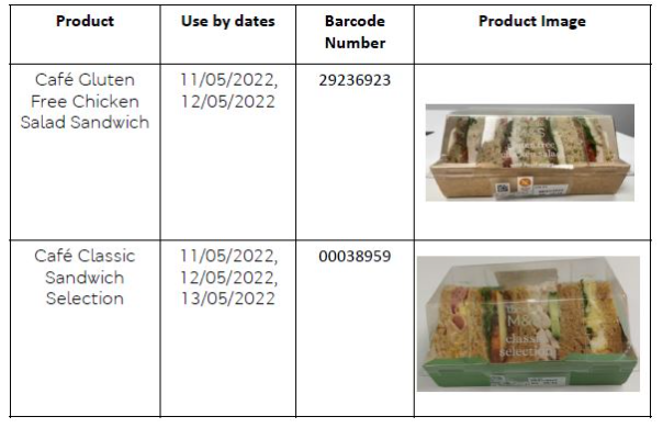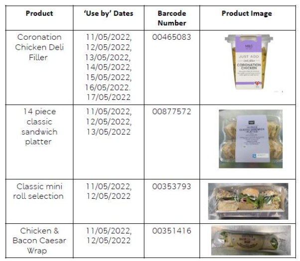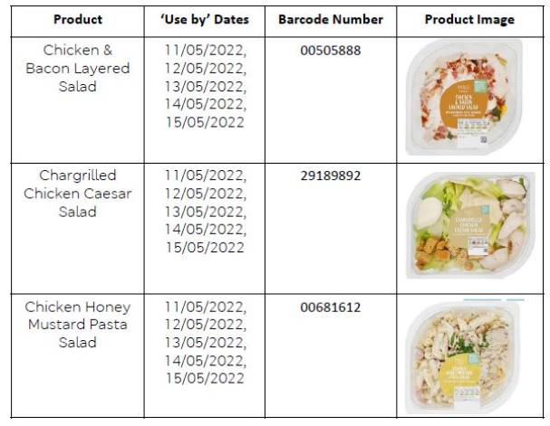 Marks & Spencer is recalling some products containing chicken due to the possible presence of Salmonella.  Point-of-sale recall notices will be displayed in stores supplied with the implicated batches.