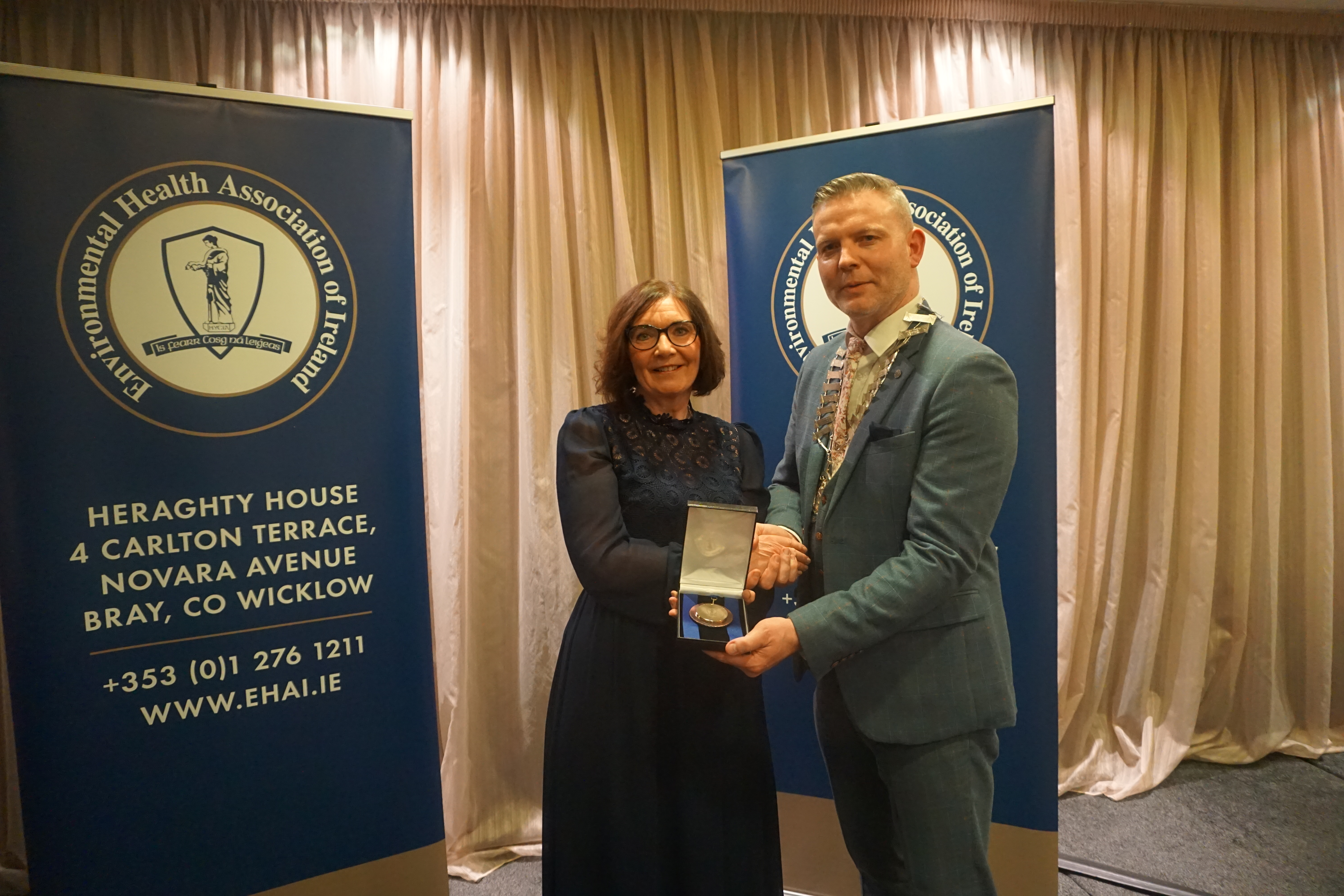 We’re delighted to announce that in December 2019, Dorothy Guina-Dornan, Chief Specialist in Environmental Health, FSAI was presented with the Environmental Health Association Ireland (EHAI) Con Healy Medal in recognition of her service, dedication and expertise to the environmental health profession.