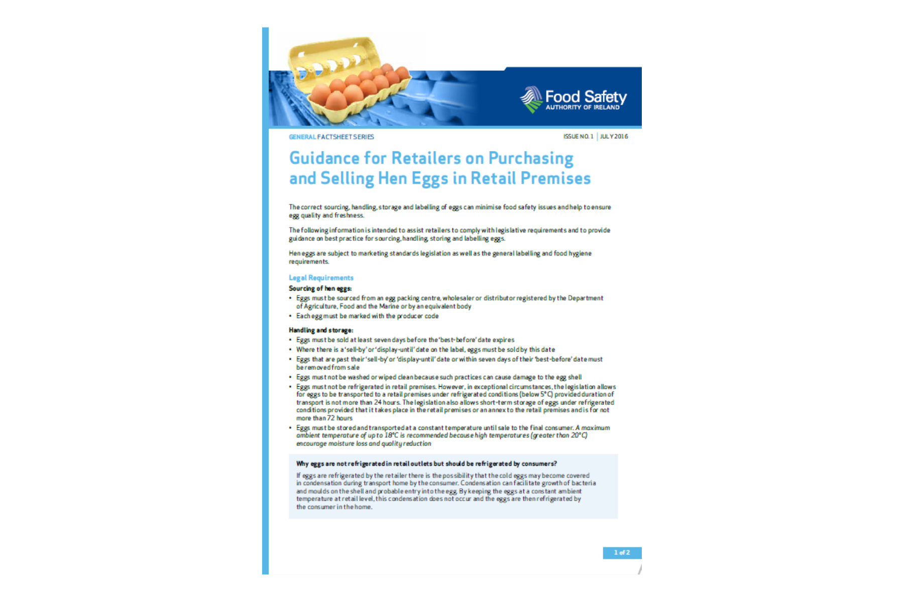 This factsheet is intended to assist retailers to comply with legislative requirements and to provide guidance on best practice for sourcing, handling, storing and labelling eggs.
